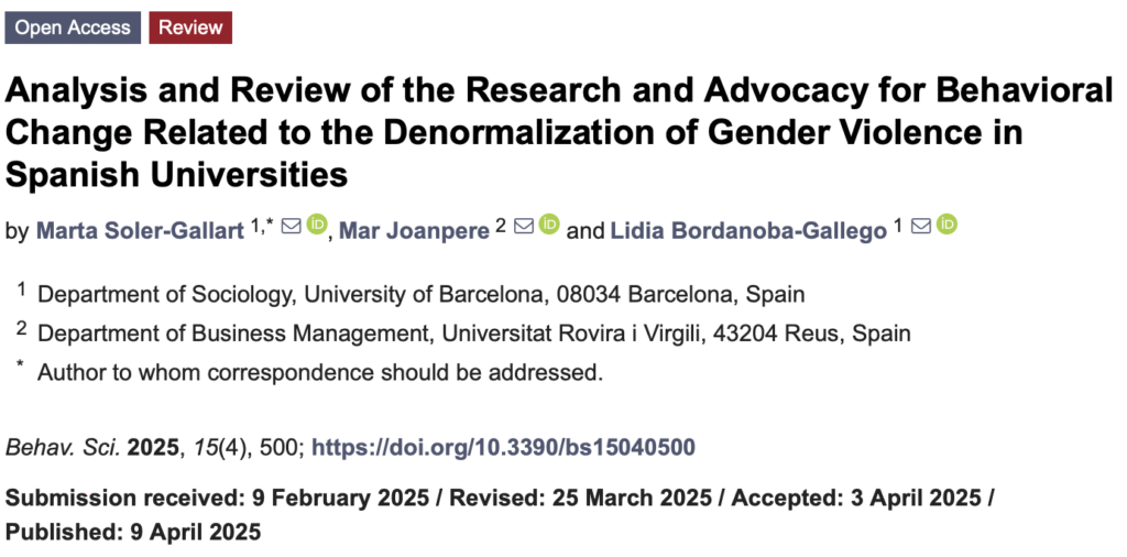 Analysis and Review of the Research and Advocacy for Behavioral Change Related to the Denormalization of Gender Violence in Spanish Universities.